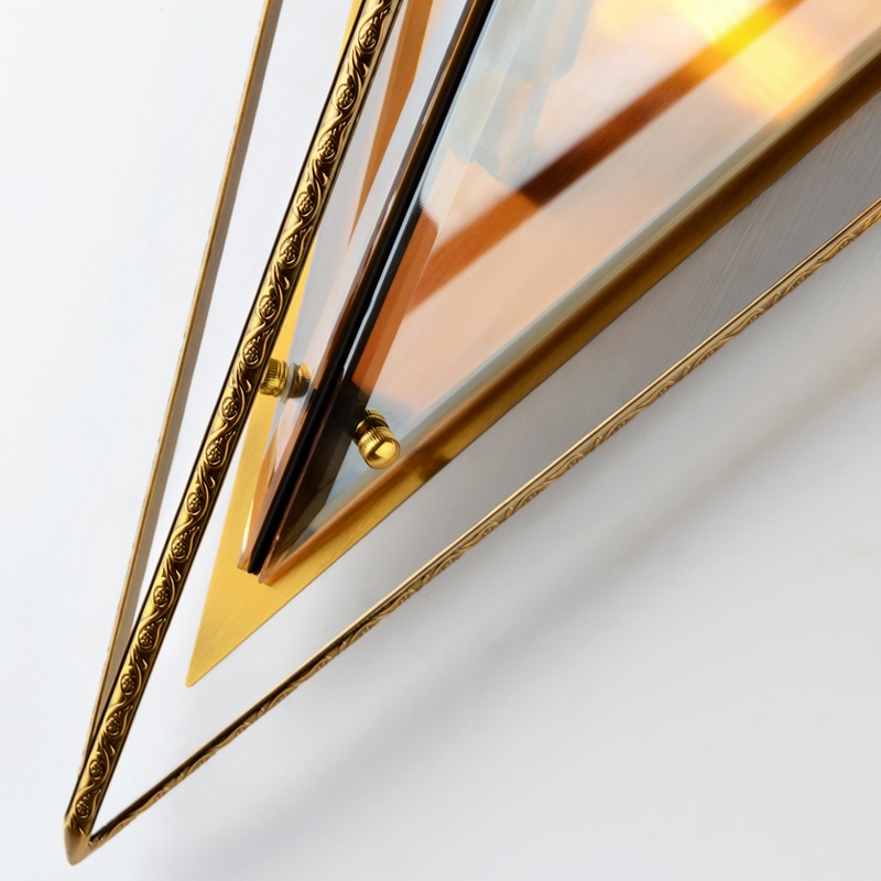 Elevate your space with the luminous geometry of the “Aura” Wall Sconce, a masterpiece where modern design meets the timeless brilliance of diamond-cut artistry.​ This stunning fixture redefines ambient lighting, crafted with a frame of premium brushed brass that embraces panels of meticulously faceted, high-clarity glass. Each geometric glass panel is beveled and angled to mimic the precision of a diamond’s cut, designed to capture, refract, and scatter light into a dazzling display of shimmering patterns across your walls. The result is a captivating interplay of light and shadow that transforms any room—from the living area to the bedroom hallway—into a gallery of sophisticated illumination.