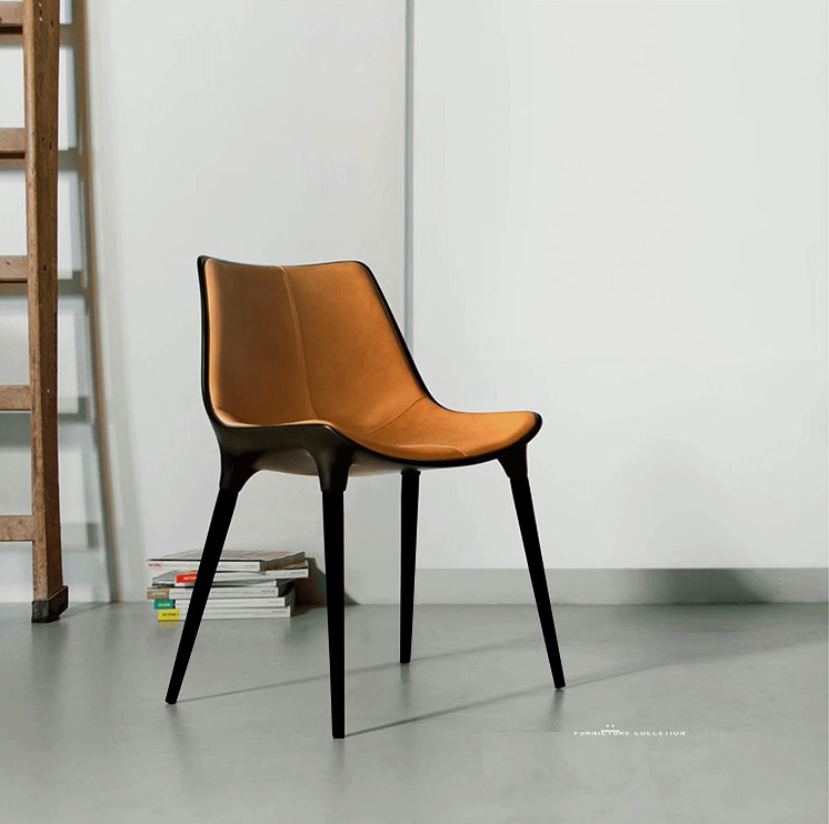 With its sleek profile and minimalist detailing, this chair embodies modern Scandinavian and mid-century design principles. The contrast between the warm orange seat and the cool black legs creates a visually striking balance, while its compact footprint allows for flexible arrangement in smaller spaces. It’s not just furniture — it’s a statement piece that elevates your interior style.