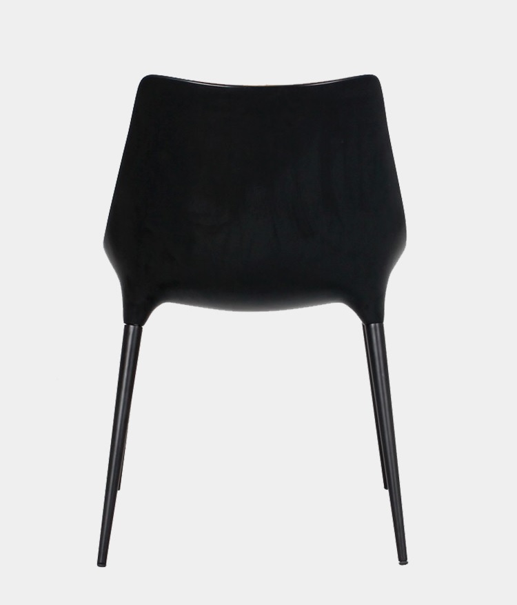 Constructed with a matte black steel frame, the chair delivers exceptional stability and durability. The four tapered legs are engineered to support up to 250 lbs, ensuring safety and longevity. The powder-coated finish resists scratches and corrosion, making it suitable for both indoor and light outdoor settings like covered patios.