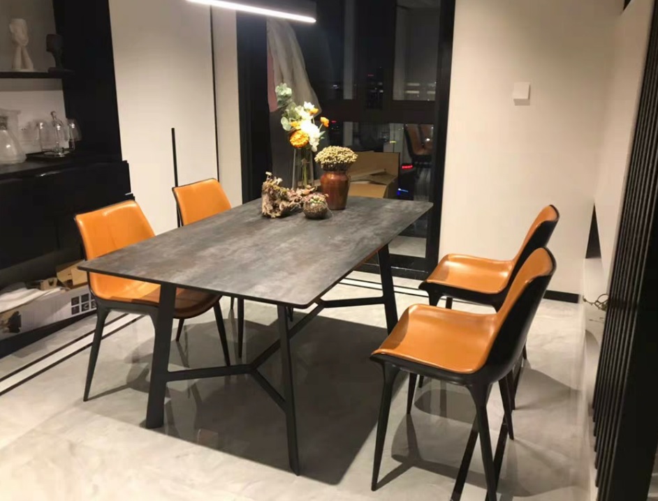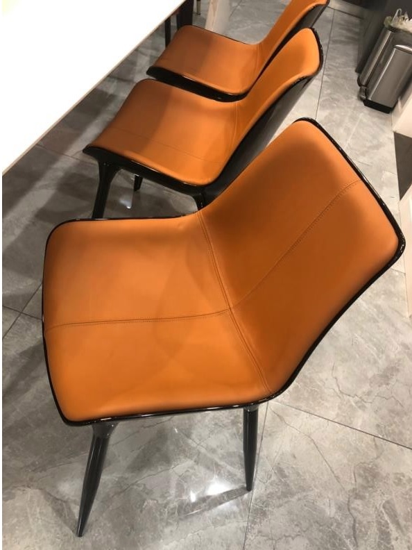 The chair is upholstered in high-quality, fade-resistant orange fabric that offers a soft, tactile experience. The material is easy to clean and maintain, making it ideal for daily use. Its ergonomic shape contours to the body, reducing pressure points and promoting better posture during long dinners or work-from-home lunches.