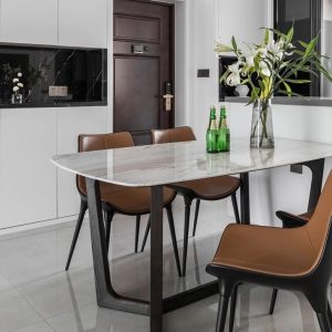 Designed with ergonomics in mind, the gently curved backrest and contoured seat provide optimal lumbar support and all-day comfort. The plush yet durable fabric invites you to linger over meals, while its clean lines and sculptural silhouette reflect a refined aesthetic that suits both casual and formal environments. Whether paired with a wooden table or a glass-top ensemble, this chair effortlessly bridges form and function.