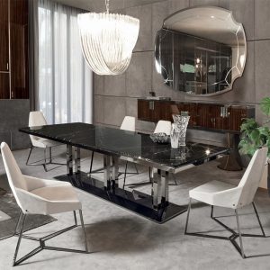 The chair’s striking visual appeal is anchored by its geometric base, crafted from high-quality stainless steel with a sophisticated finish. This intersecting frame not only ensures exceptional stability but also adds a sculptural element to your dining space, creating a stunning contrast against the rich texture of the velvet upholstery. Sold as a complete set of six, these chairs offer a cohesive and polished look, making them the perfect choice for large dining tables or open-plan living areas. Whether you are hosting a formal dinner party or enjoying a quiet family meal, this set transforms your dining room into a sanctuary of modern style and refined taste.