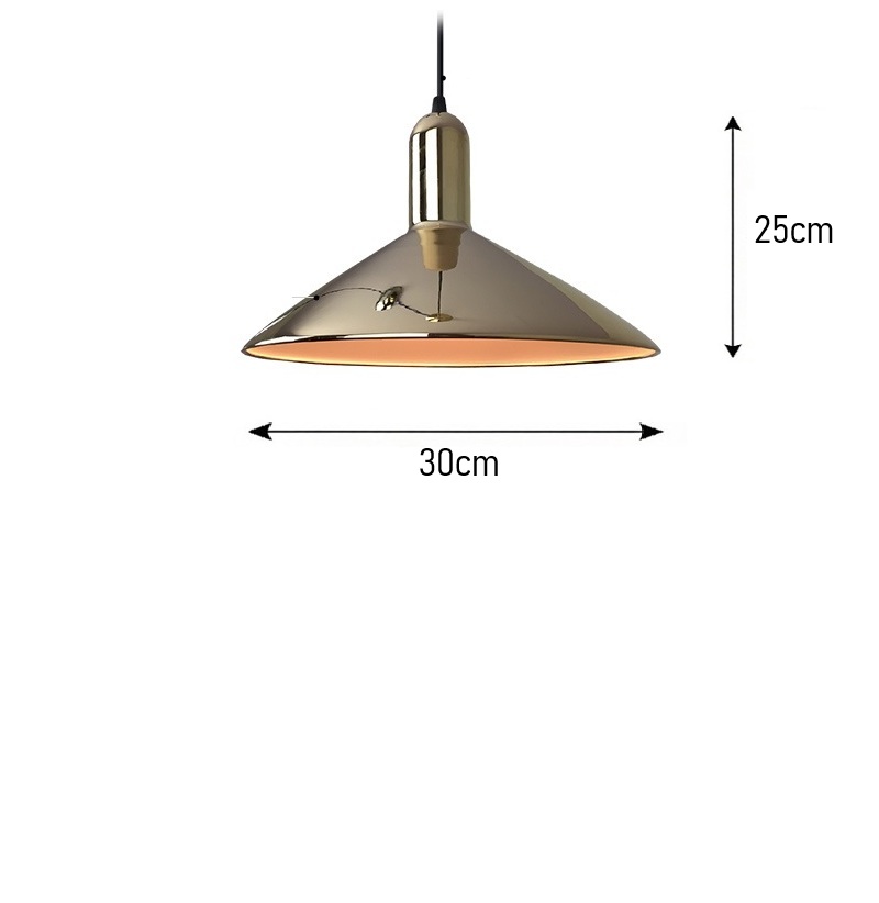 Crafted from premium metal, this pendant features a sleek, inverted cone shade that directs light downward to highlight tables and surfaces. The lustrous gold finish adds a touch of elegance, while the internal copper tone ensures the light emitted is warm and inviting, creating a cozy ambiance for any setting.