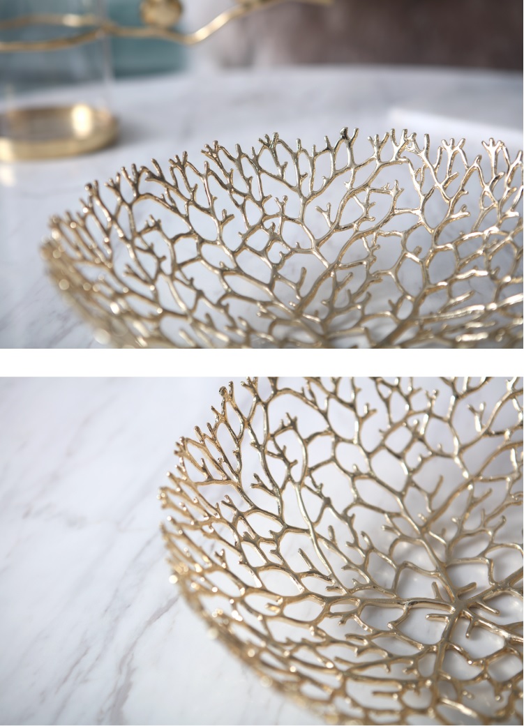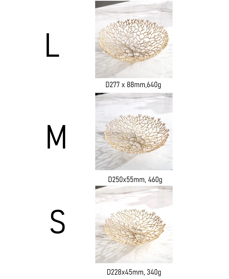 Elevate your home decor with this exquisite Set of 3 Golden Branch Nesting Bowls, where modern artistry meets the organic beauty of nature. Crafted with meticulous attention to detail, these metal trays feature a stunning hollow-out design that mimics the intricate patterns of tree branches or coral reefs. The lustrous gold finish catches the light beautifully, casting delicate shadows and adding a touch of sophisticated glamour to any room.