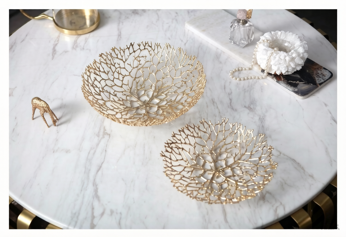 Whether used as a striking centerpiece on your coffee table, an elegant fruit basket in the dining room, or a chic organizer for cosmetics and trinkets on your vanity, this set offers both style and versatility. The nesting design allows you to display them together for a tiered visual impact or use them separately in different areas of your home, making them a practical yet artistic addition to your living space. Perfect for modern, glam, or eclectic interiors, these bowls are more than just decor—they are a conversation starter.