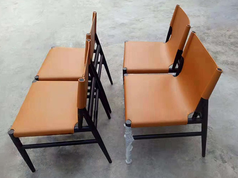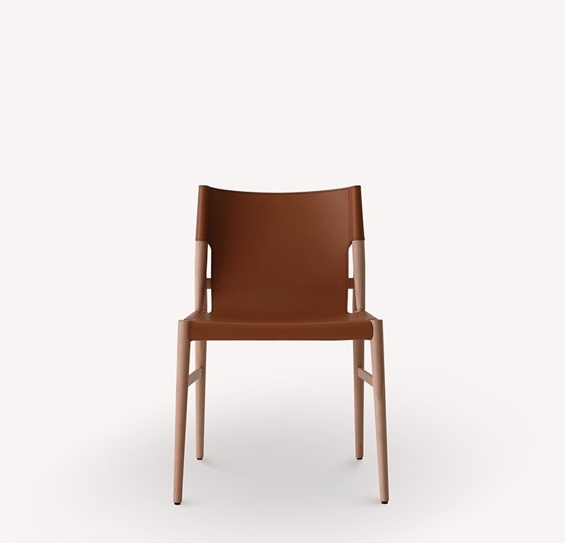 Crafted for contemporary interiors, this minimalist leather dining chair redefines understated sophistication. Its clean lines and warm, rich-toned leather upholstery create a timeless aesthetic that complements both modern and mid-century spaces. The backrest flows seamlessly into the seat, forming a gently contoured silhouette that offers subtle ergonomic support—ideal for relaxed dining or conversation, without the bulk of traditional armrests.