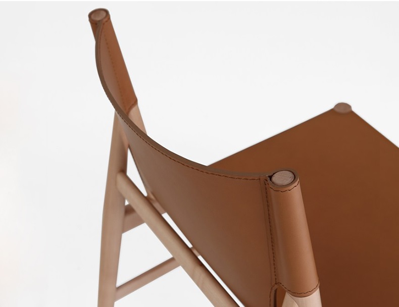 The full-wrapped seat base is meticulously stitched, ensuring durability and a refined finish that highlights the premium quality of the leather. Every seam is precision-crafted, enhancing both structural integrity and visual harmony. The leather’s (fine grain texture) is not only visually appealing but also tactilely inviting, aging gracefully over time to develop a unique patina.